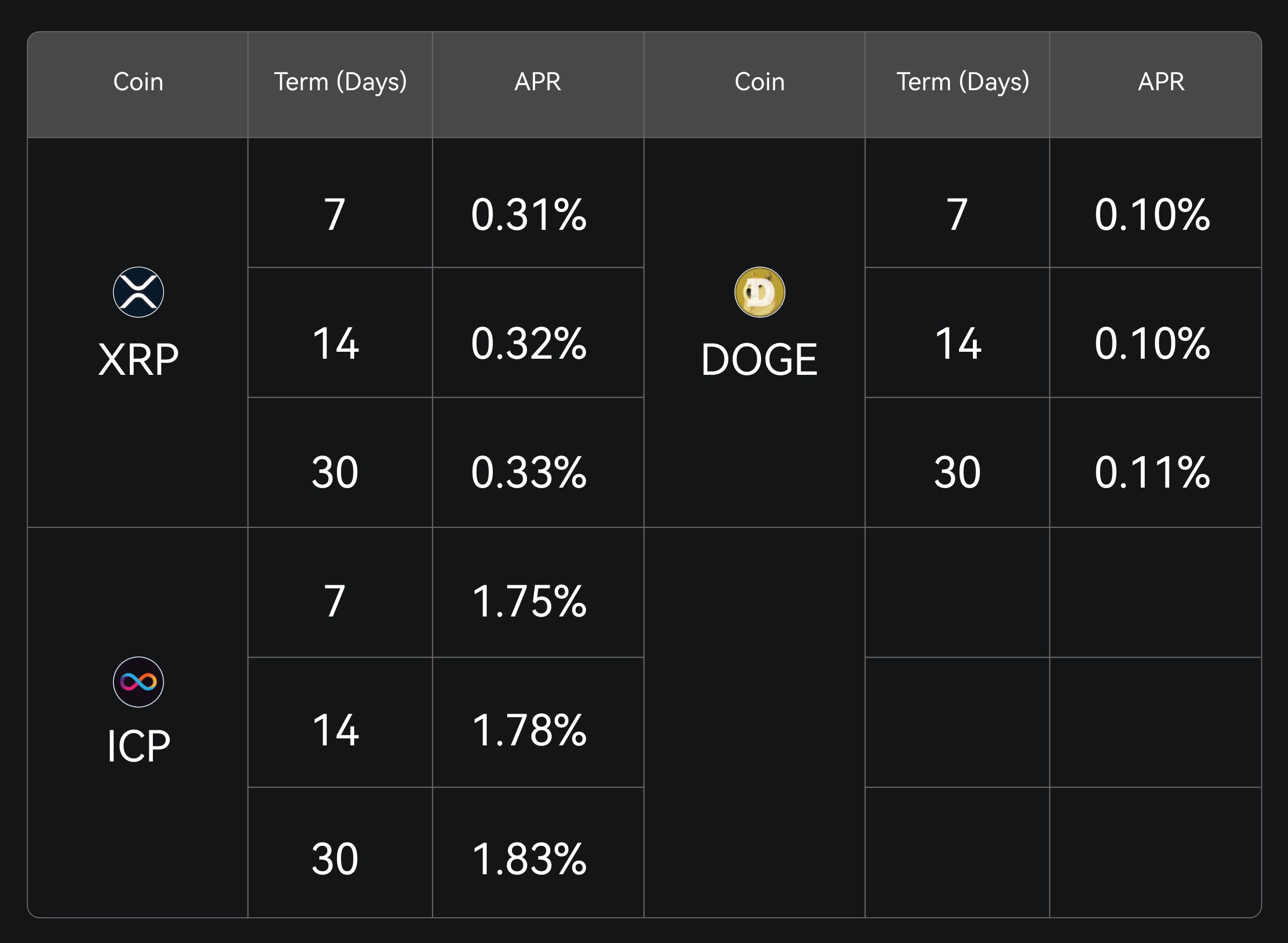 XRP, DOGE, ICP Fixed Term Now Available