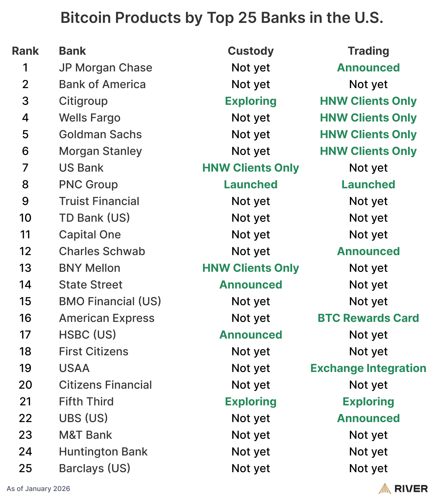 Con un entorno regulatorio favorable en EE. UU., los bancos pueden custodiar bitcoin y ofrecer productos de bitcoin a sus clientes.