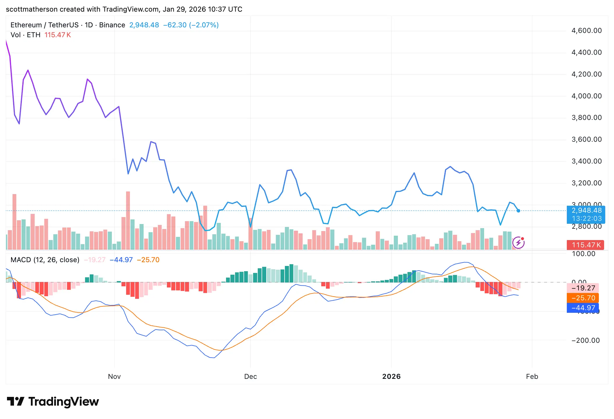 ! EthereumETH cotizando a 2.948 dólares en el gráfico 1D | Fuente: ETHUSDT en Tradingview.comImagen destacada de Pexel, gráfico de Tradingview.com