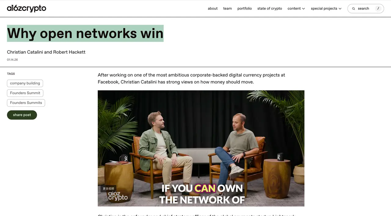 Resumen de la entrevista con a16z: ¿Por qué la red abierta siempre puede ganar?