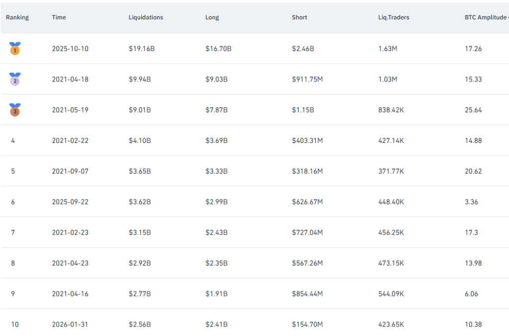 La volatilidad a corto plazo se disparó el 31 de enero cuando el mercado sufrió su décimo evento de liquidación más grande, con $2.56B en posiciones apalancadas eliminadas. Esto representó una gran limpieza de posiciones largas sobreapalancadas.