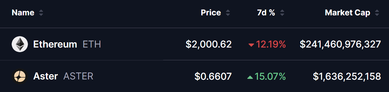 ASTER ha superado al mercado en general, ganando aproximadamente un 15% mientras ETH cayó más del 12%