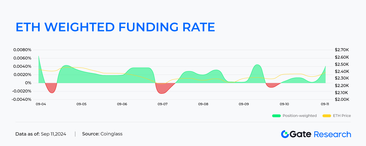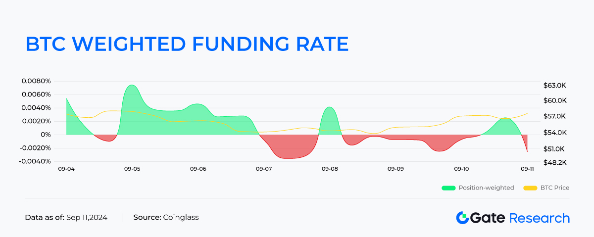 Hasta las 11:00 (UTC +0) del 11 de septiembre, la tasa de financiación ponderada de BTCTenencias es -0.026%, y la tasa de financiación ponderada de ETH坊Tenencias es 0.0041%. Durante los últimos siete días, la tasa de financiación ponderada de BTC ha cambiado de positiva a negativa desde el 7 de septiembre, y en general, la tasa de financiación ponderada de ETH坊Tenencias es positiva. La fuerza de los contratos BTC en toda la red es débil, mientras que los contratos ETH坊 están dominados por posiciones en largo.
