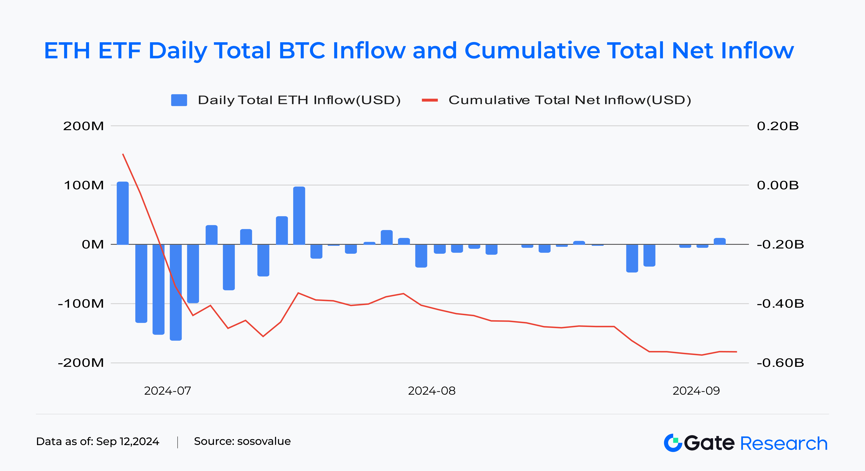 Desde el 7 de septiembre hasta las 4:00 del 11 de septiembre (UTC+0), el valor neto de los activos totales del ETF de Ethereum es de 6.53 mil millones de dólares, lo que representa el 2.28% de la capitalización total de Ethereum. Se ha producido una salida neta acumulada de 562 millones de dólares. El 10 de septiembre hubo una entrada neta de aproximadamente 11.44 millones de dólares, con una gran entrada de Fidelity de aproximadamente 7.13 millones de dólares, seguida de BlackRock con una entrada de aproximadamente 4.31 millones de dólares.