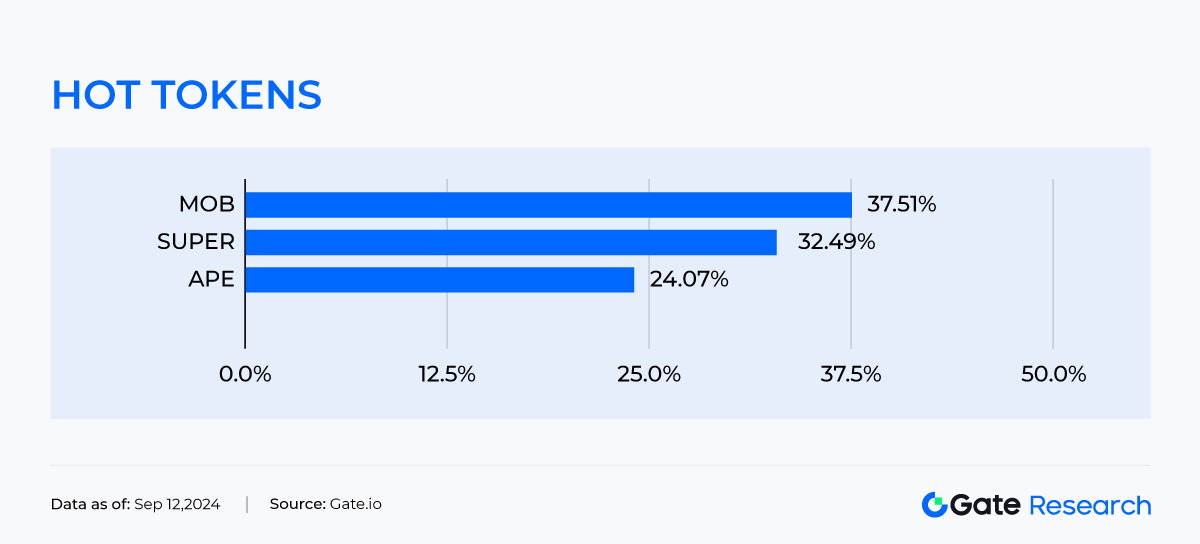 AI Agents es un proyecto de inteligencia artificial basado en la Cadena de bloques Descentralización, diseñado para proporcionar servicios de automatización a aplicaciones Descentralización. Impulsado por el concepto de inteligencia artificial en el evento de lanzamiento de Apple el 10 de septiembre, esta zona ha mostrado un rendimiento destacado. Fetch.ai (FET) y SingularityNET (AGIX) experimentaron un pump del 18.5% y 20.6% respectivamente. A medida que se expanden las aplicaciones que combinan la inteligencia artificial con la Cadena de bloques, el potencial del campo de AI Agents se fortalece aún más.