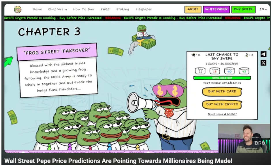 La preventa de Wall Street Pepe supera los $60 millones a medida que la FOMO impulsa una gran subida de ICO