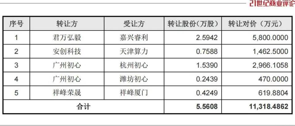 En mayo de 2025, Junwan Hongyi transfirió 8B de acciones antiguas a Jiaxing Ruili por un precio de 58 millones de RMB, siendo la única ocasión de desinversión/cash-out públicamente realizada.