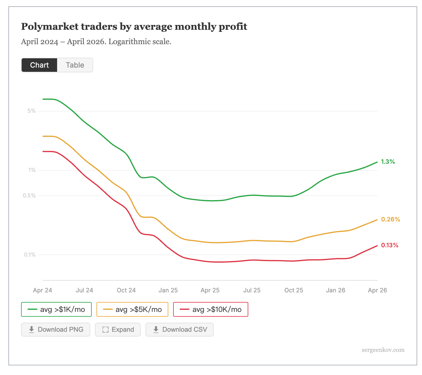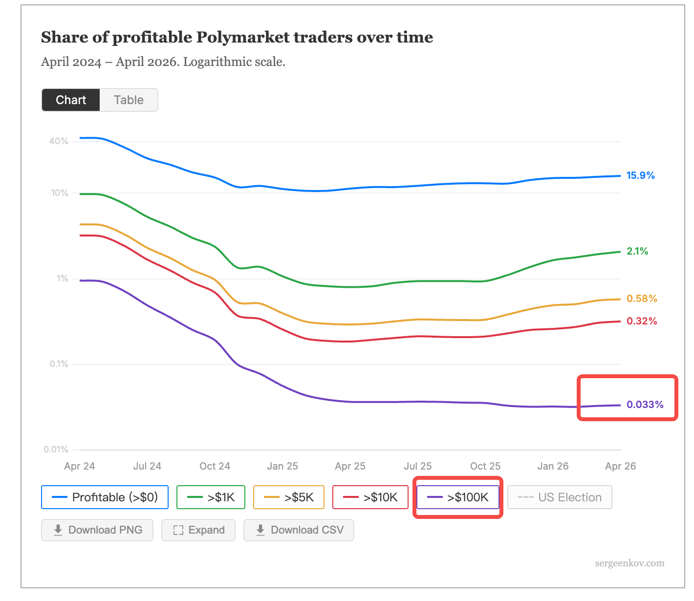 Polymarket: el 84% de los traders están perdiendo dinero, el 0.033% ha obtenido la mayor parte de las ganancias