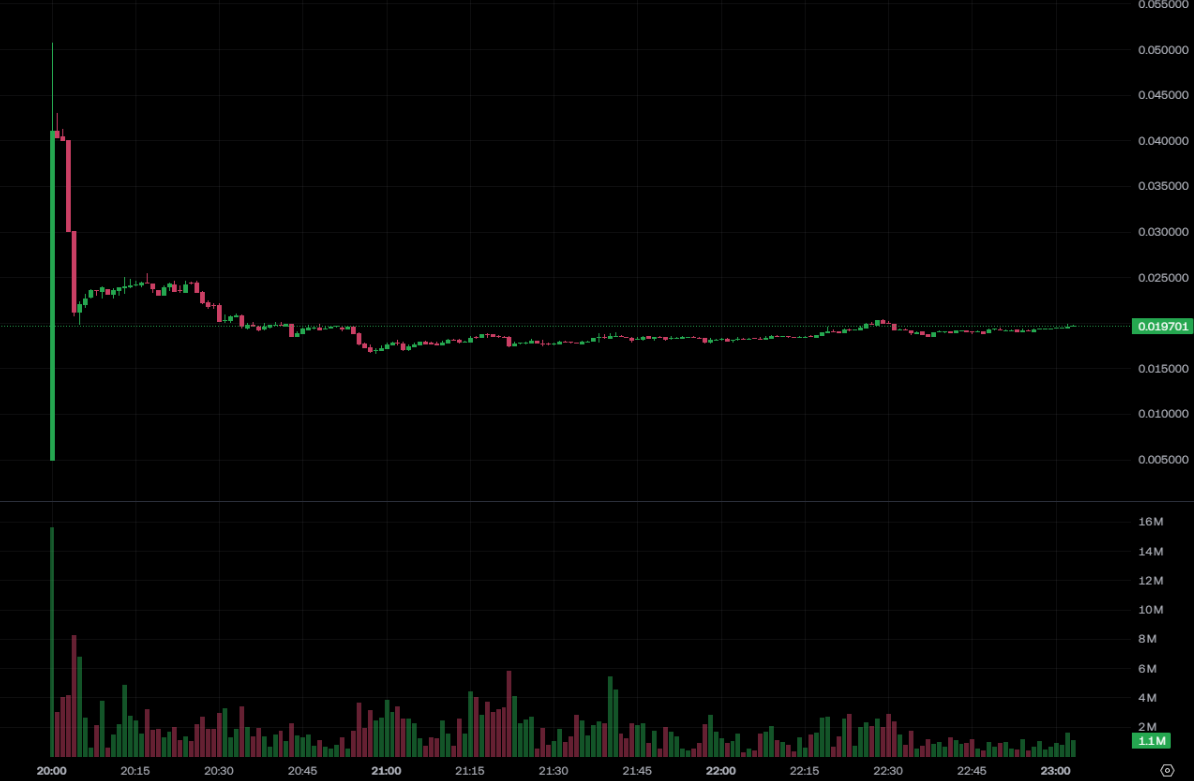 Cependant, dès le premier jour, il a été confronté à des rumeurs de sortie massive (FUD), provoquant de fortes turbulences sur le prix. Selon les données d’OKX, après son lancement vers 20h00, le prix de $SPACE a brièvement atteint 0,05 USD, avant de chuter rapidement, atteignant un minimum de 0,0166 USD. Au moment de la rédaction, il est à 0,0195 USD, avec une volatilité très élevée.