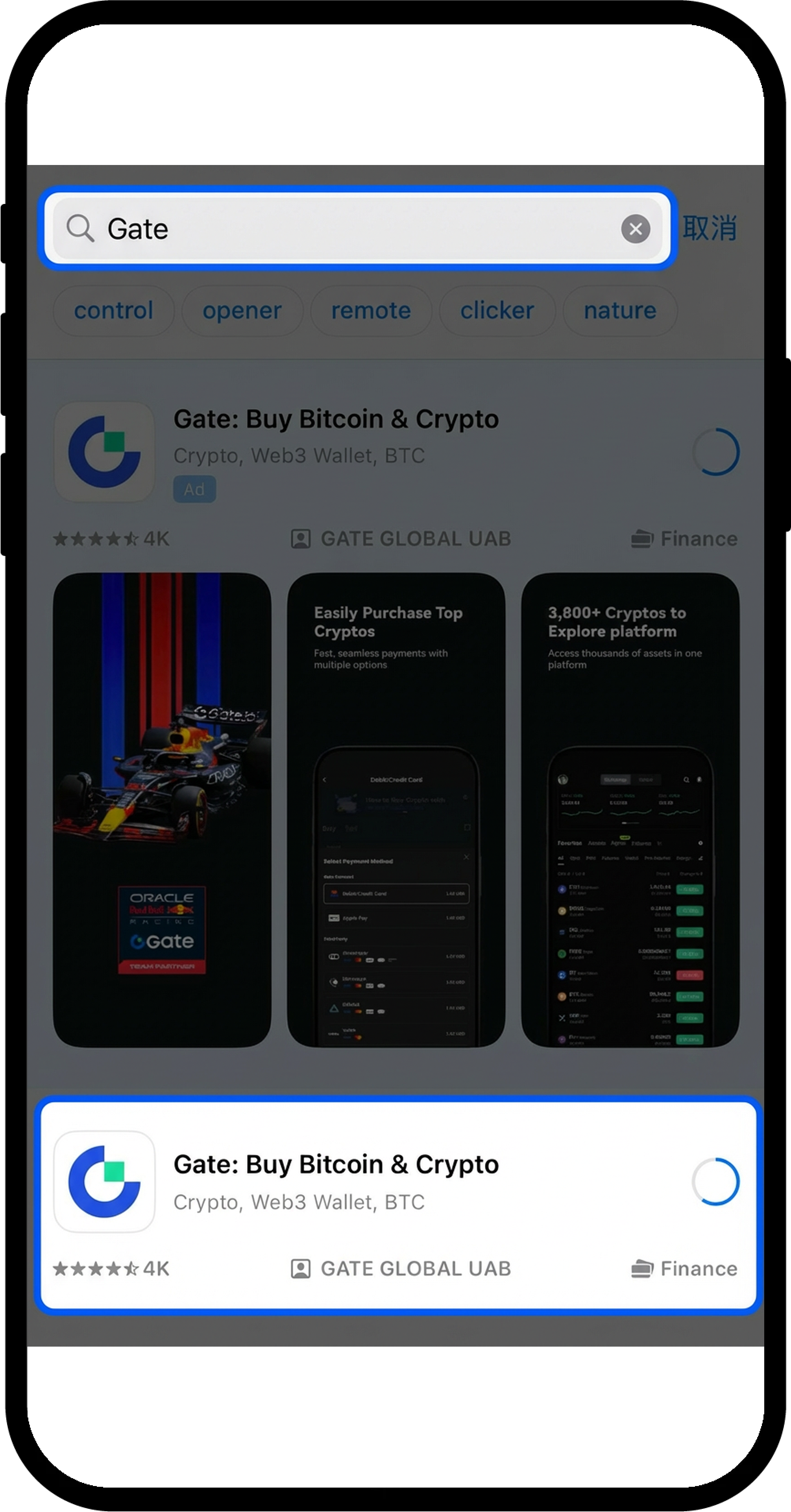 3. 根据你所在的国家/地区,App Store 中可能无法搜索到 Gate App,请遵守当地法律法规