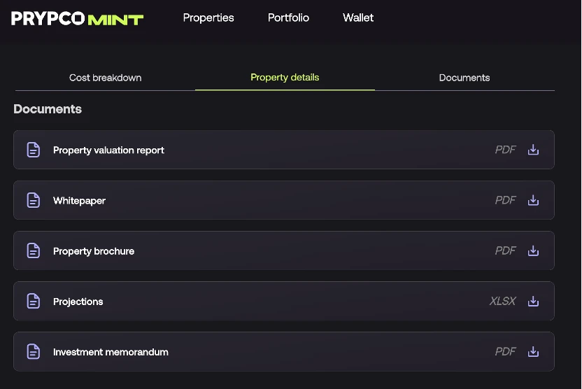 トークン化されたプロパティの最初のセット、出典:Prypcoの公式ウェブサイト