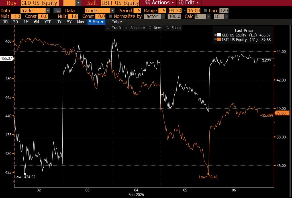 同時に、過去数週間のIBITの価格動向はソフトウェア株やその他のリスク資産と非常に強い相関を示していることも観察しています。 ゴールドマン・サックスのプライム・ブローカレッジ部門も、2月4日がマルチストラテジーファンドの歴史上最悪の1日パフォーマンスの一つであり、Zスコア3.5を記録したと報告しました。