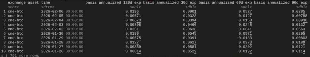CMEビットコインの30/60/90/120日を基にした1月26日から昨日までの全データセットをご覧ください(industry@dlawant最高のリサーチ専門家のおかげで)。 近月ベース取引は2月5日の3.3%から2月6日には驚異的な9%に跳ね上がりました。 これはETFローンチ以来、私たちが個人的に目撃した市場で最大の上昇の一つであり、最も起こりそうなことを示しています。それは、注文に基づくデレバレッジのベーシス取引です。