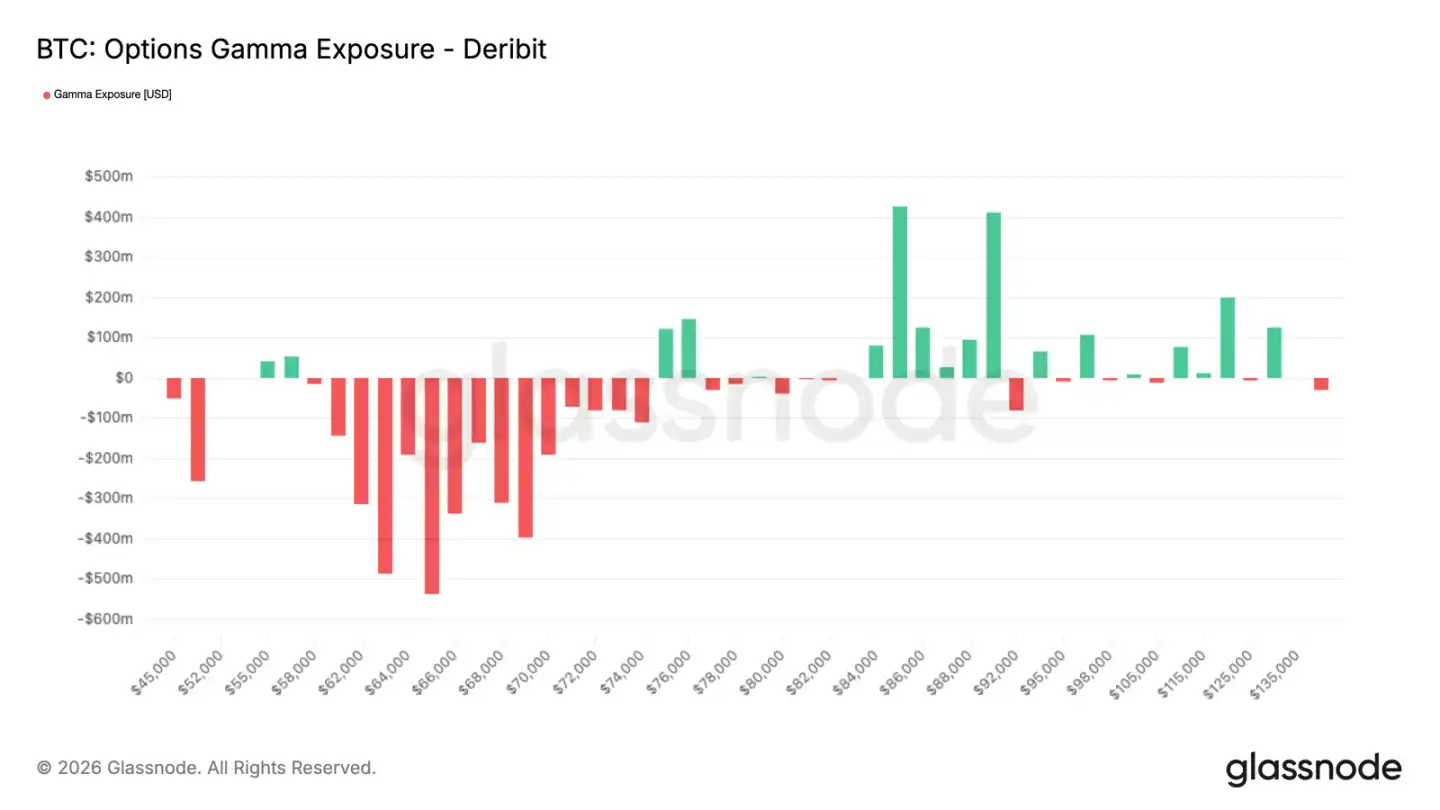 この種の防御的なオプション流は、メーカーのポジションに痕跡を残す。メーカーがガンマを空にした場合、価格が上昇すれば買い、下落すれば売る動きが加速し、波動が拡大しやすい。