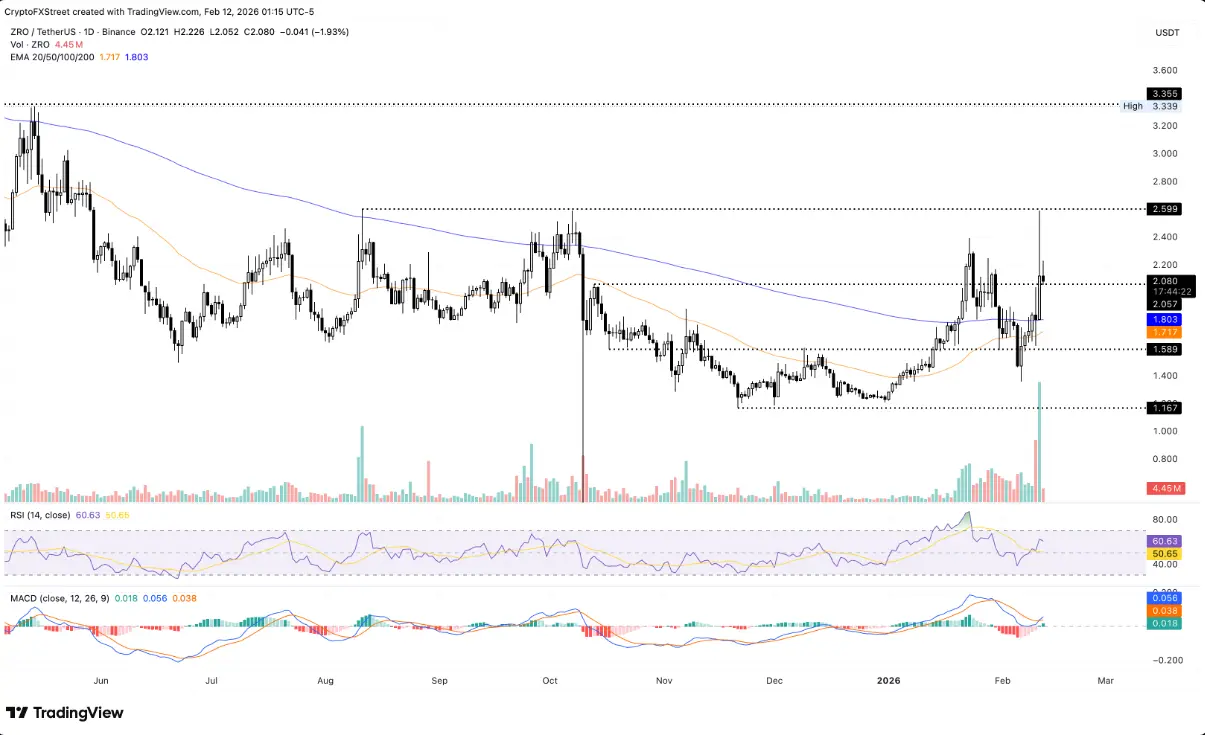 一方、ZROが2.00ドルを割り込むと、調整圧力により価格は1.80ドルの200日EMA付近まで下落する可能性があります。これは、現状のトレンドを支える「救済線」として機能します。
