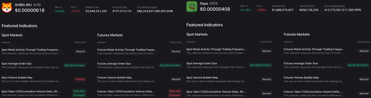 この先物市場の状況は、時価総額でリードするミームコインのDogecoinに対して、SHIBやPEPEに比べて資金流入が偏っていることを明確に示している。