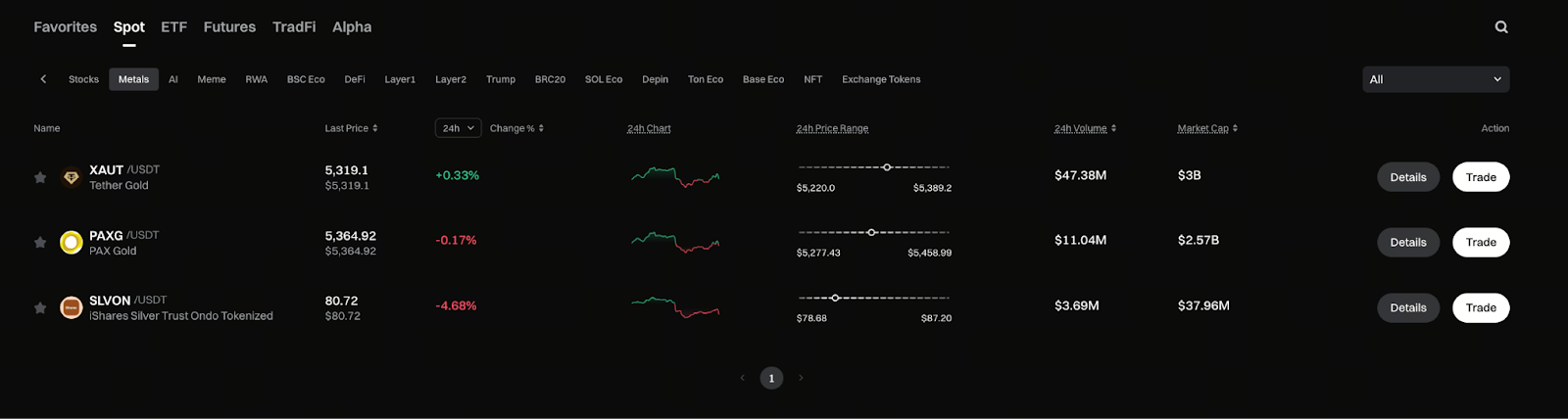 - Centralized Multi-Asset Management: Beyond gold and silver, the section aggregates multiple metal assets, letting users allocate and arbitrage across assets within a single system.
