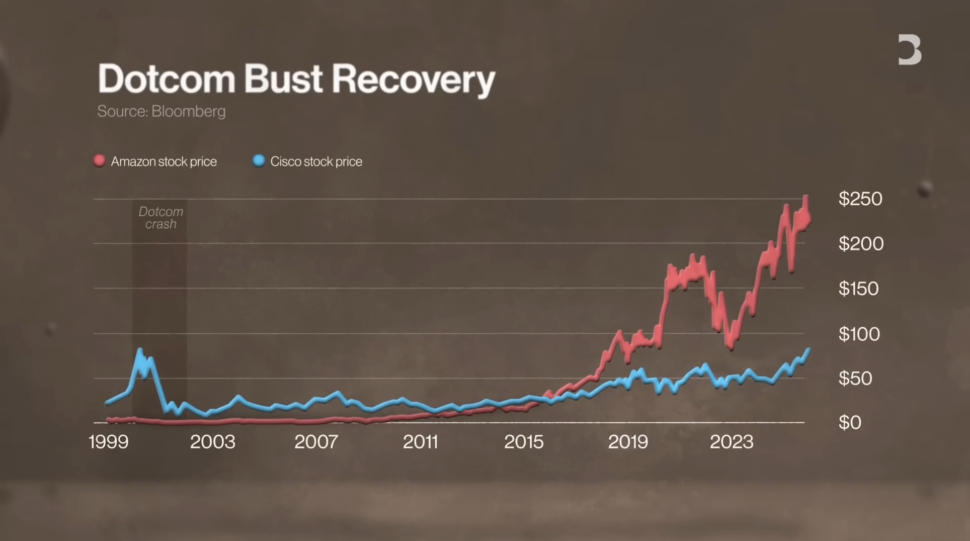 To grasp the potential risks of today’s AI boom, look back at the 2000 dot-com bubble. Then, internet companies promised a new era of hope, but ultimately caused massive losses. Savings were wiped out, office parks emptied, and about $5 trillion in value vanished globally. Tech stocks suffered the most, including many internet companies. Even the strongest firms took years to recover. Amazon, a famous survivor, took 8 years to regain its pre-bubble stock price, while Cisco as an infrastructure provider took 25 years to recover.