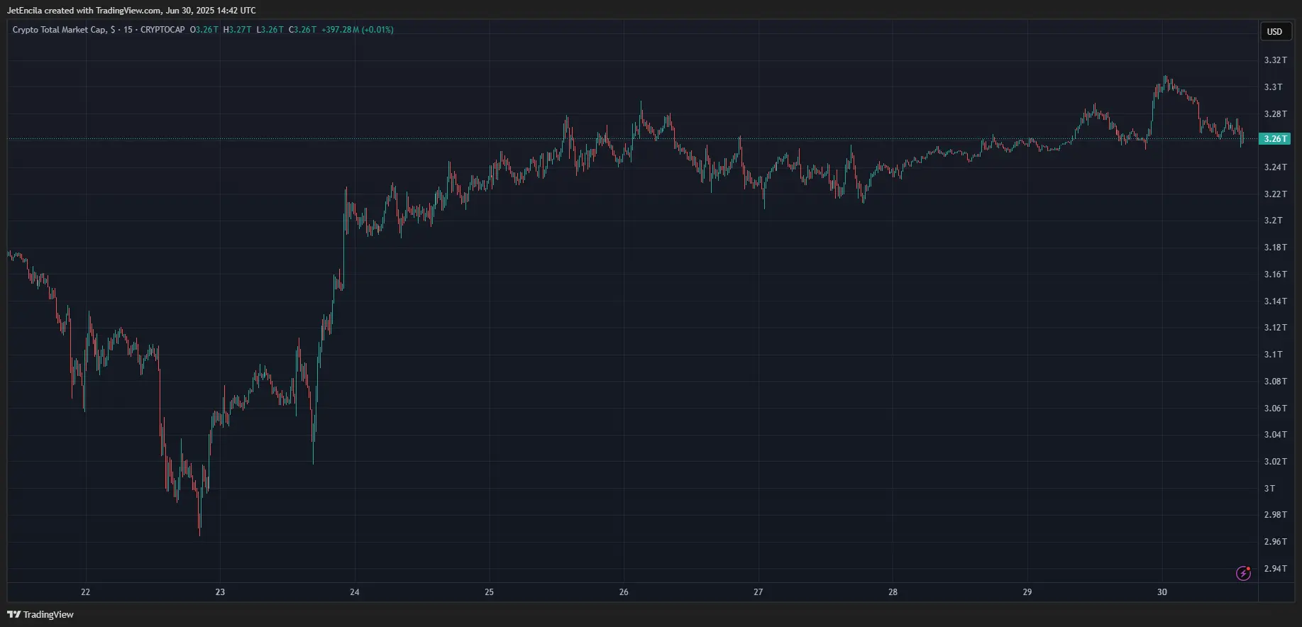 Total crypto market cap currently at $3.26 trillion. Chart: TradingViewThey also juggle more products—7.3 different investment vehicles on average compared with 4.3 for non‑crypto investors—and 73% of them hold domestic stocks.
