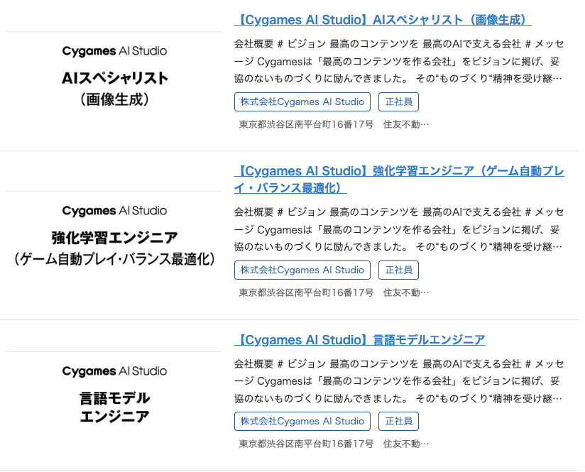 Meanwhile, Cygames AI Studio has also announced job openings, currently recruiting AI image generation experts (aks AI chant singers), reinforcement learning engineers, language model engineers, and more.