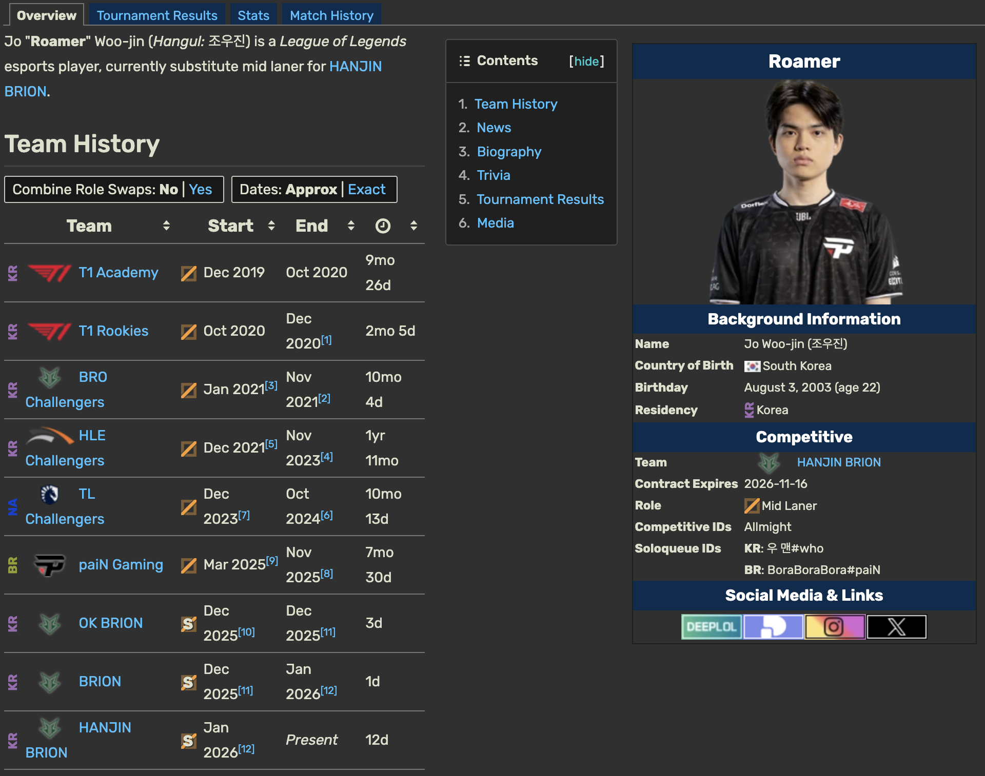 As Korean and Chinese players further analyze, the community speculates that this account may belong to a substitute mid laner Roamer of the LCK team HANJIN BRION (BRO).