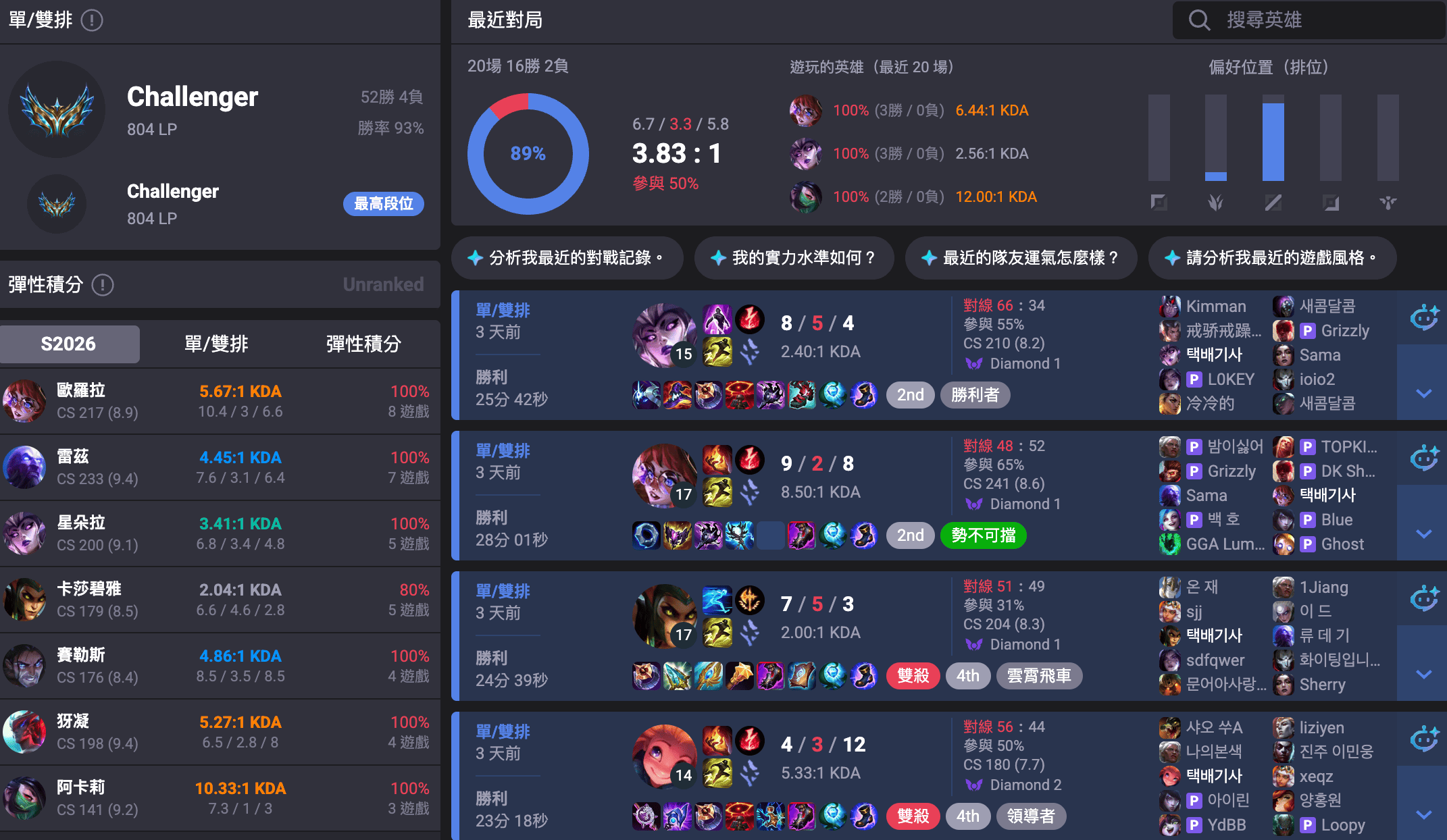 The Korean server (LCK) has long been regarded as the benchmark for “League of Legends (LOL)” competitive strength. However, recently a mysterious account appeared, achieving an astonishing record of 56 ranked matches in just two days with a 93% win rate, once ranking as high as fourth on the Korean server. Some players speculate whether it is an AI team previously mentioned by Elon Musk or an alternate account of a professional player.