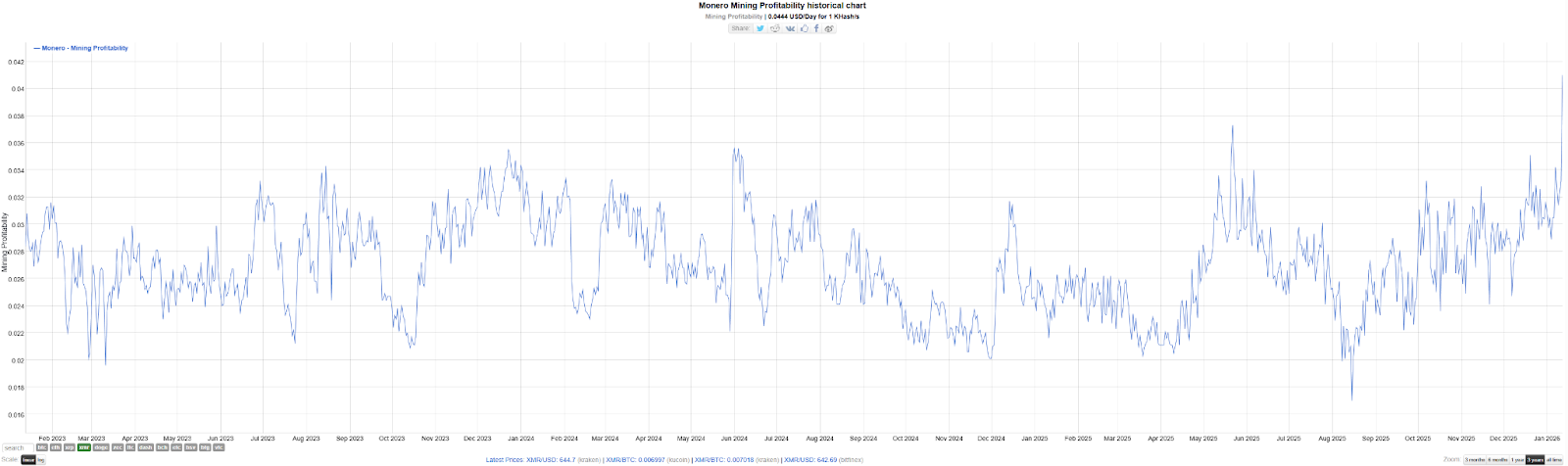 A noteworthy episode occurred in September: the Qubic project claimed control of over 51% of XMR’s total network hash rate and conducted a “demonstration attack,” causing an 18-block chain reorganization. This event sounded an alarm in the community, prompting many miners to migrate hash power to the established pool SupportXMR. This turbulence was a major reason for the sharp fluctuations in mining difficulty at the end of 2025, but it also indirectly confirmed the activity and resilience of the hash market.