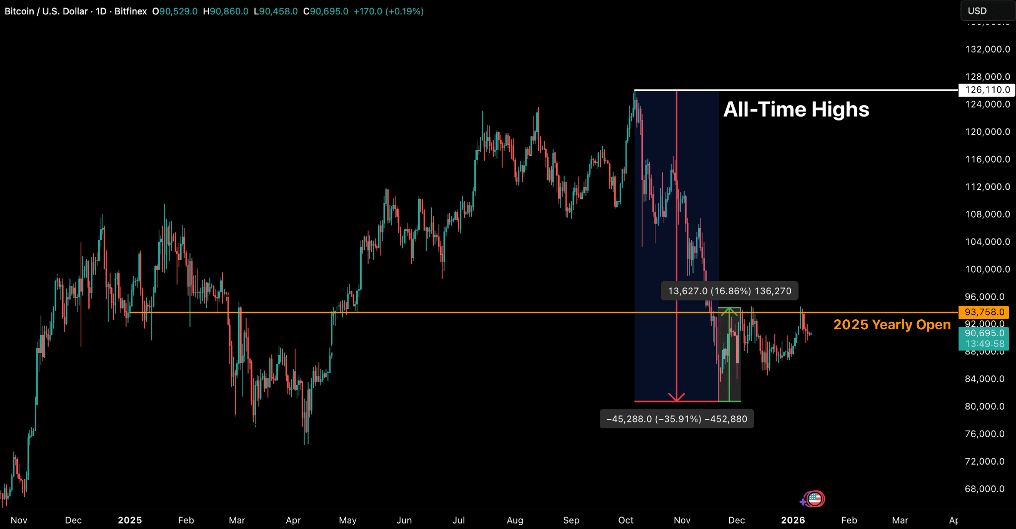Although the mid-term outlook for 2026 remains constructive amid expectations of improved global liquidity, short-term price performance is still constrained by multiple factors, including geopolitical uncertainties, divergent ETF capital flows, and the market’s inability to firmly establish above the resistance zone, resulting in an incomplete upward market structure.