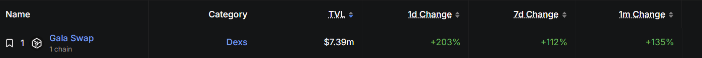 Gala Chain TVL/Source: Defillama