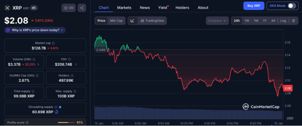 XRP currently trades at $2.16 with $131B market cap while Bitcoin holds $97,379 with $1.94T valuation, creating ratio dynamics technical analysts study for relative strength signals. The XRP/BTC chart has structures that indicate that it may break out should the resistance be broken well without any untidy patterns as had been witnessed before major moves were made.