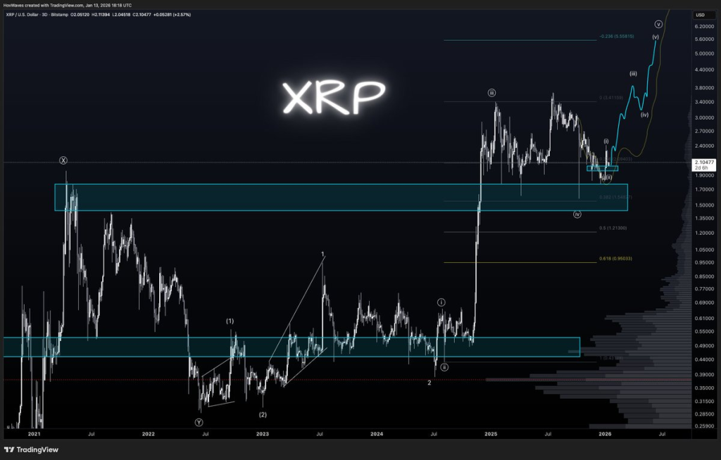 For a major uptick to occur, XRP has to surpass $2.18. This level has acted as a strong resistance in the past week despite several breakout attempts. As of January 15, XRP was trading at $2.12. Hov predicts the XRP price could rally to $5.60 in the long run.