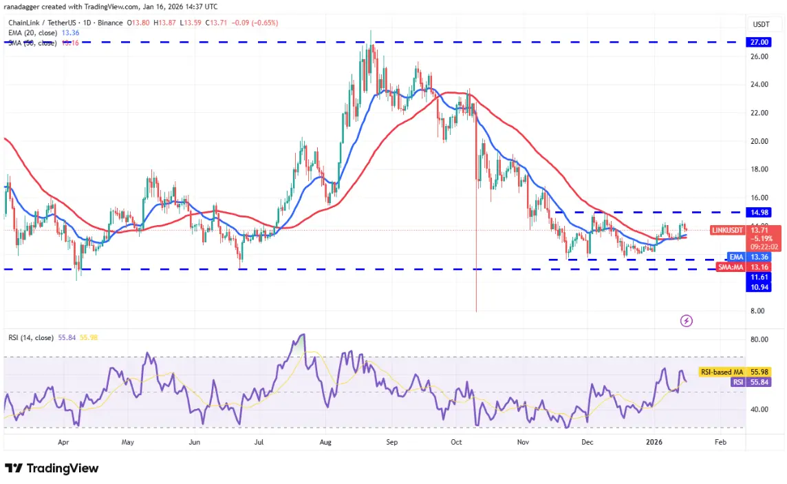 Chainlink is still oscillating between $11.61 and $14.98, indicating buying pressure near support zones and increasing selling pressure as the price approaches resistance.