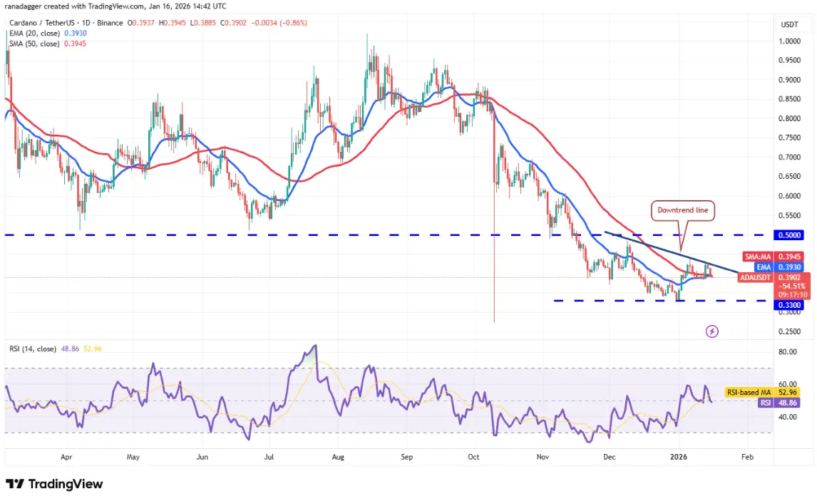 Daily ADA/USDT chart | Source: TradingView Currently, ADA has minor support at $0.38, but if this level is broken, the ADA/USDT pair could fall to $0.33. Buyers are expected to defend the $0.33 zone strongly, because if this support is breached, the price could plunge to the October 10 low at $0.27.