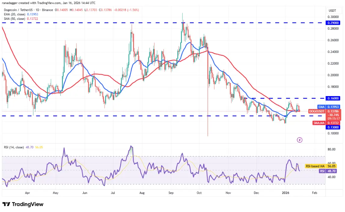 Daily DOGE/USDT chart | Source: TradingView The moving averages are flat, and the RSI is near neutral, suggesting DOGE/USDT may enter a consolidation phase. If the price drops below the moving averages, DOGE could decline to $0.13, or even $0.12.