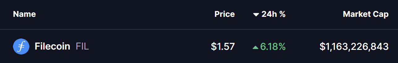 Filecoin (FIL) rises nearly 6% amid broader crypto market strength