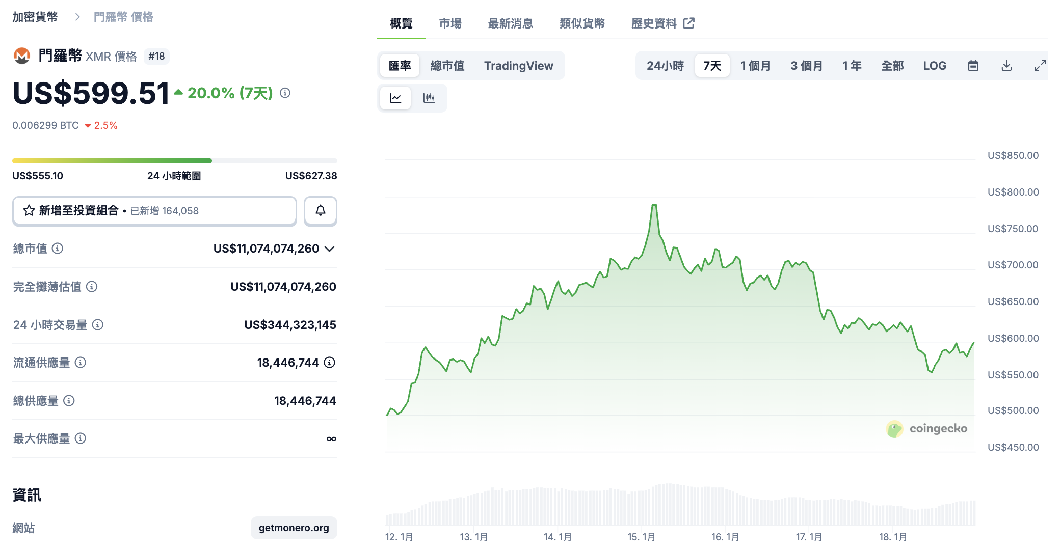 According to CoinGecko data, Monero’s price skyrocketed from around $450 before the incident to a peak of $797.73 within days, an increase of nearly 80%, setting a new all-time high. Subsequently, although Monero retreated to around $600, its weekly gain remained over 20%.