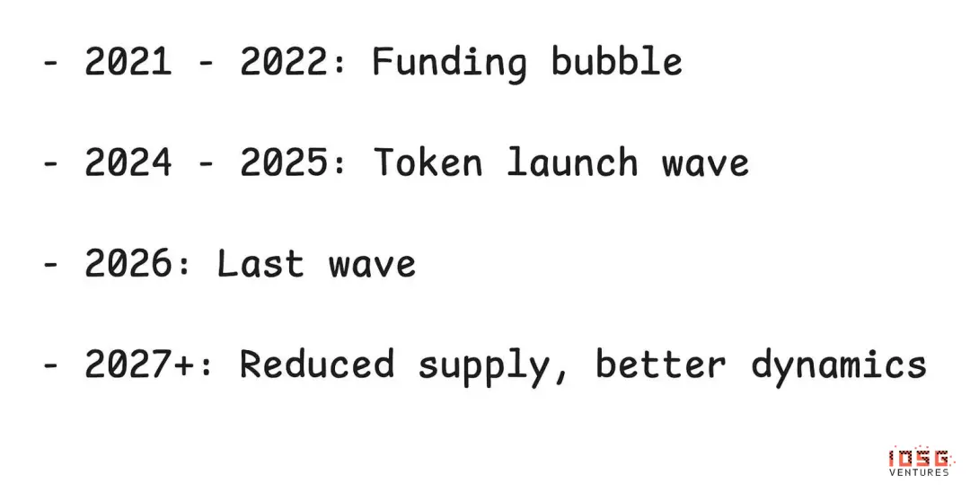 The altcoin market has faced its toughest year. To understand why, we need to look back at decisions made years ago. The 2021-2022 funding bubble led to a wave of projects raising large amounts of capital, many of which are now in their token issuance cycles. This created a fundamental problem: a flood of supply entering the market with almost no corresponding demand.