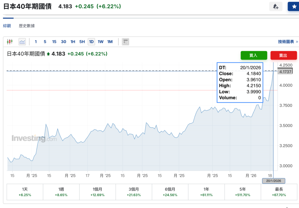 Japan’s bond market once again drew global investor attention on Tuesday. The 40-year Japanese Government Bond (JGB) yield rose by 6 basis points intraday, breaking the 4% mark and setting a new record since the bond’s first issuance in 2007, also marking the first time in over 30 years that any Japanese sovereign debt of such duration has reached this level.