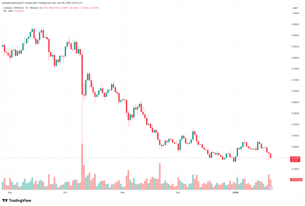 Still, Cardano (ADA) has declined by 13% in the last seven days as of January 20th, underperforming the market. The Cardano price outlook is currently bearish, with the Fear & Greed Index at 32. Forecasts suggest an average recovery of 56% to reach $0.5615 by July 2026.