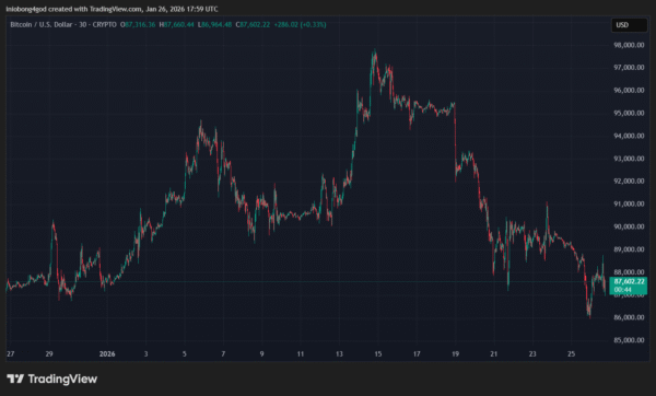 At press time, BTC trades near $87,700 after a modest move higher. The OG coin recently fell to a five-week low near $86,000, wiping out early 2026 gains. Current price levels place the asset 30% below its October peak.
