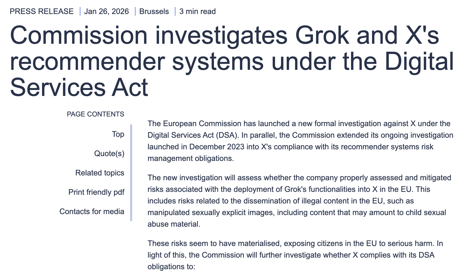 The European Union has officially launched an investigation into X and Grok deepfake controversy under the Digital Services Act, involving minors’ content and platform governance failures, potentially facing hefty fines.