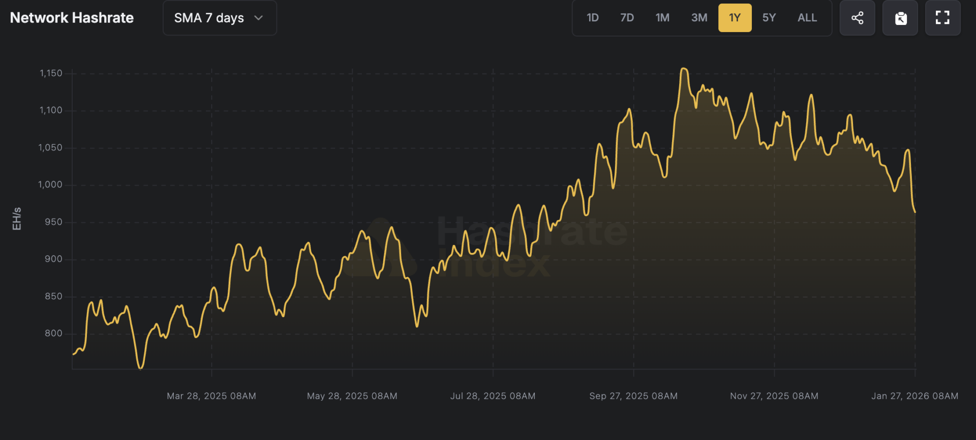According to the latest data from Hashrate Index, the 7-day moving average of Bitcoin’s total network hash rate has fallen to 993 EH/s, down nearly 15% from the all-time high in October last year. Meanwhile, Morgan Stanley analysts indicate that by December 2025, the daily block reward income per EH/s for Bitcoin miners will drop to $38,700, a record low.