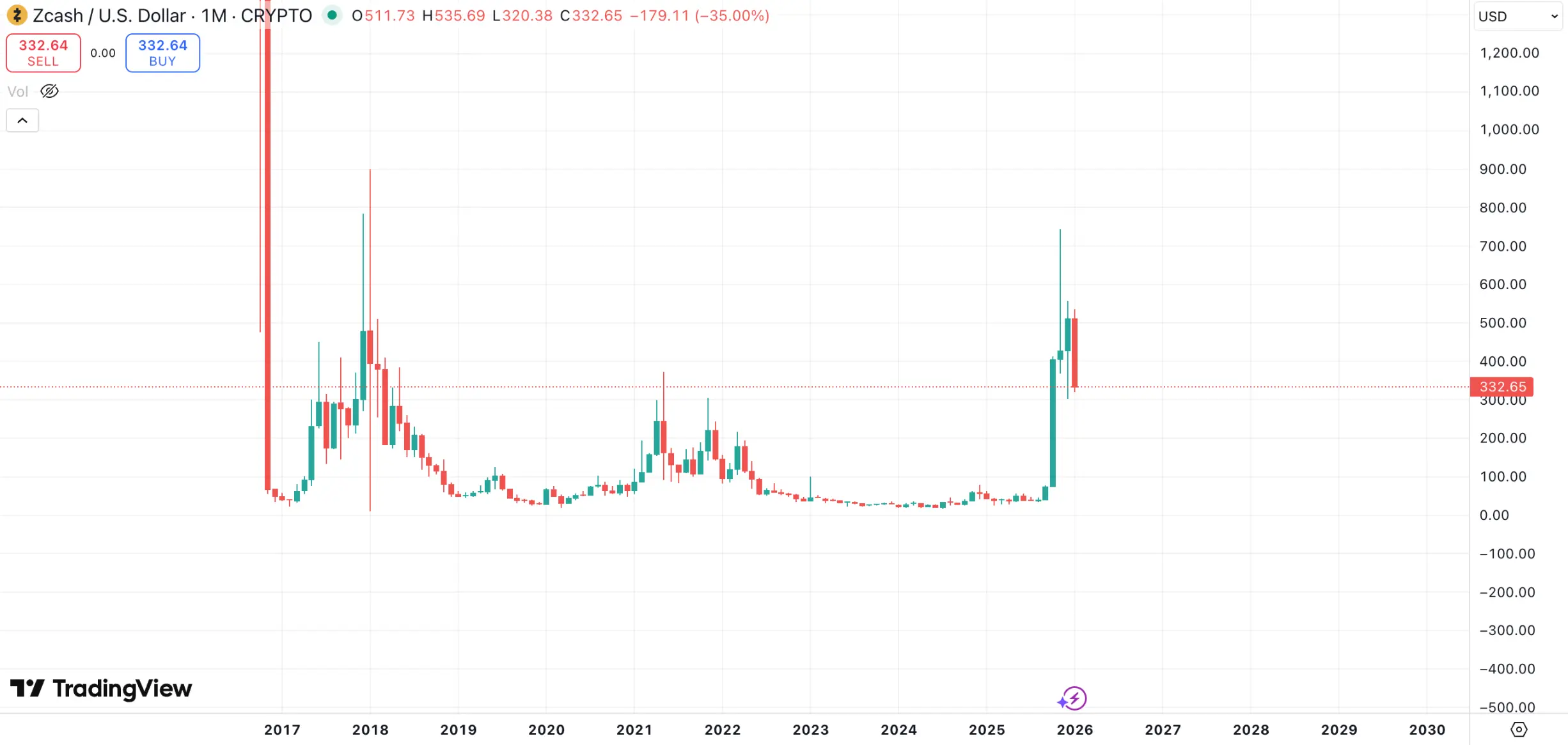 Readers who haven’t experienced that period might find it hard to understand the market’s obsession with such tokens at the time. There was controversy over whether Bitcoin was the absolute core of cryptocurrencies, and many tokens claiming to be “better Bitcoin” were aggressively competing. ZEC’s price once surged to $30,000 in early 2018, while Bitcoin’s highest price in that cycle was less than $20,000.