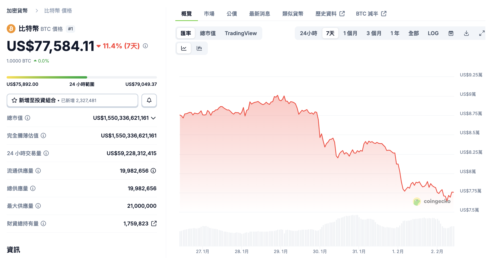 Image source: CoinGecko Bitcoin not only broke the $80,000 psychological support but also briefly dipped to the $75,000 range, marking the lowest since the start of the year.