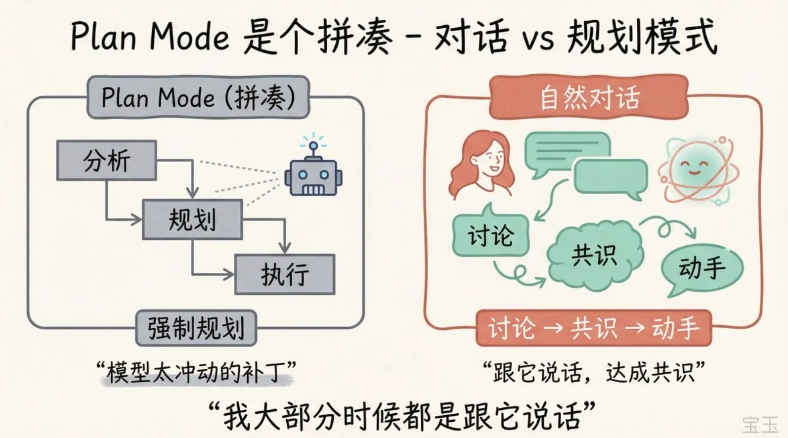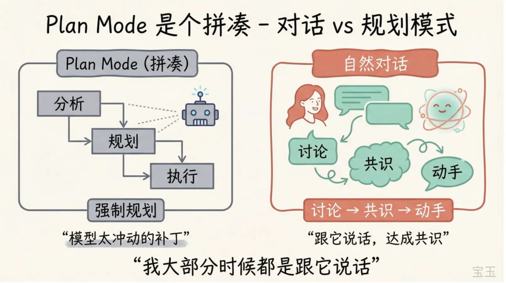 “Plan mode is a patch that Anthropic had to add because the model is too impulsive, jumping straight into coding. If you use the latest models, like GPT 5.2, you just talk to it. ‘I want to build this feature, do it this way, I like this style, give me a few options, let’s discuss.’ Then it proposes, you discuss, reach consensus, and start.