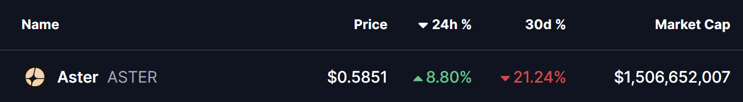 Amid this recovery, several altcoins have turned green, including the decentralized exchange (DEX) token Aster (ASTER). The token has surged over 8%, trimming its monthly losses to around 21%. More importantly, ASTER’s price action is now flashing a familiar technical setup that hints at further upside potential.