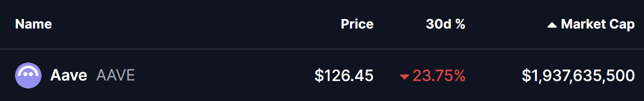 The broader altcoin market has come under heavy selling pressure over the past few days, with sentiment deteriorating rapidly across major assets. Ethereum (ETH) has plunged more than 28%, setting the tone for the wider market. Unsurprisingly, Aave ($AAVE) hasn’t been spared, shedding nearly 23% over the past 30 days.