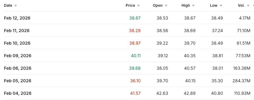 The IBIT options volume data from Investing.com shows peak stress clearly on February 6, then gradually easing. ETF capital flow data from Farside Investors also reveals an interesting paradox: net capital continued to flow into ETFs on days of heavy selling — indicating that exposure buying and insurance purchasing can occur simultaneously.