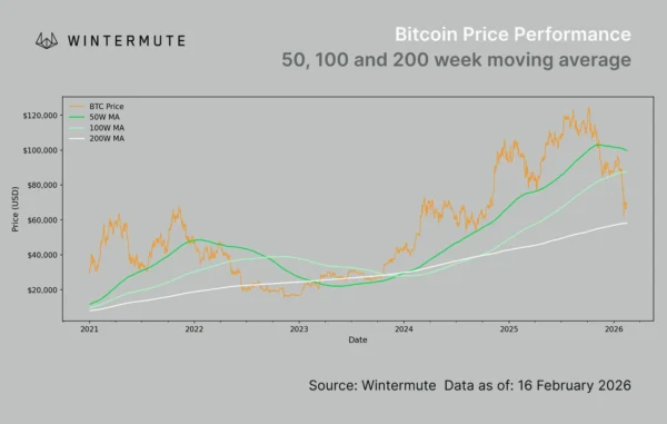 Low conviction, weak spot demand, and macro shifts keep Bitcoin capped below $70K, says Wintermute.