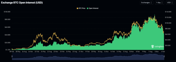 Elevated open interest and ETF outflows left Bitcoin exposed to a rapid long liquidation cascade.